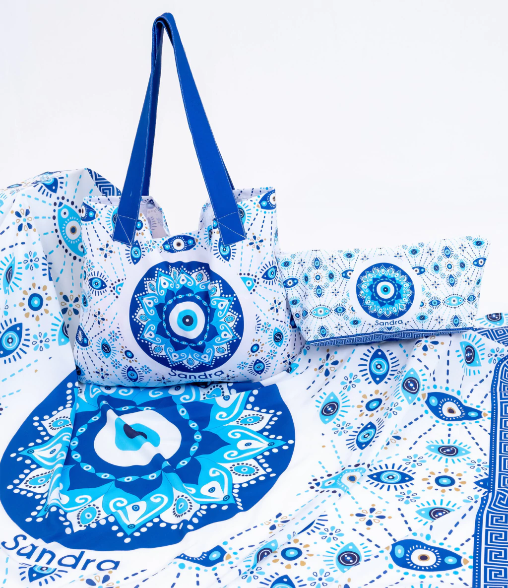 Nossa bolsa de praia/piscina tem cores fortes. Não solta tinta, não desbota.